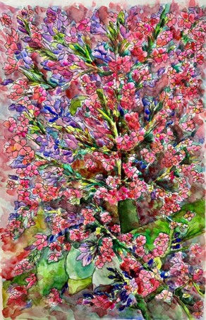 A celebration of flowers and petals in motion. This series captures the vivid exchange between flora and life that animates it. Birds, petals, and organic forms pulse with color and movement, dissolving the boundary between subject and environment. Each piece hums with energy—layered, expressive, and alive—where growth is not quiet, but radiant and dynamic.